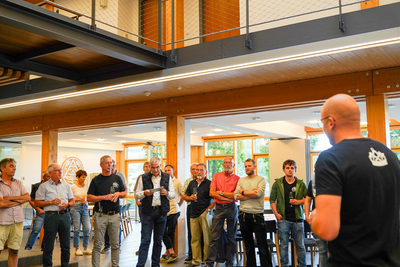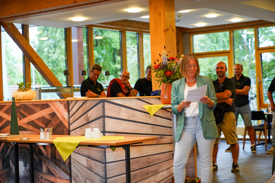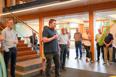 Besonders gelungen war, dass Markus Weitzmann von der Feier vollkommen überrascht wurde. Zahlreiche Gäste waren gekommen: darunter der Präsident des Holzbauverbandes Baden-Württemberg, Gerd Renz, sowie der Hauptgeschäftsführer Konstantin zu Dohna, der ehemalige Hauptgeschäftsführer, Thomas Schäfer, sowie viele aktuelle und frühere Mitarbeitende. Auch seine Frau und seine drei Töchter waren mit dabei – und sorgten so für eine weitere schöne Überraschung.
