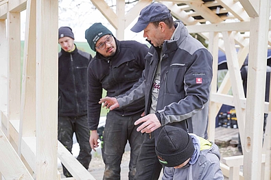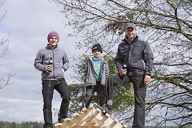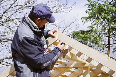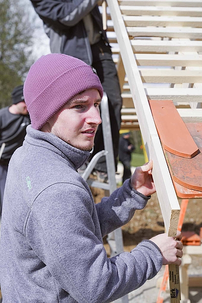 In unserer Werkstatt traf er sich am Freitagnachmittag mit dem freiwilligen Team der KLJB Reute und hat die Hütte abgebunden.