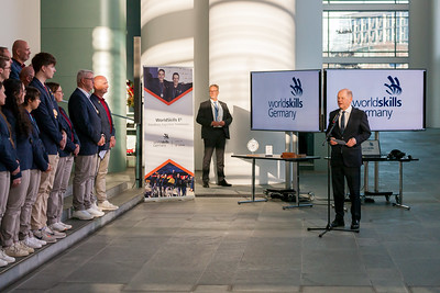„Ich bin sehr stolz auf die Leistungen bei den WorldSkills in Lyon, und ich wünsche allen, die daran teilgenommen haben, alles Gute für die weitere Zeit und vor allem Glückwunsch für die Teilnahme und die Erfolge“, betonte Olaf Scholz und richtete am Ende seiner Ansprache das Wort an alle Beteiligten: „Ich möchte mich noch einmal bei allen bedanken, die mitgemacht haben, die Ausbilderinnen und Ausbilder, die Bundestrainer, die Partnerunternehmen und das Team von WorldSkills.“
