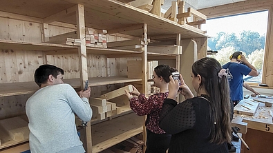 Beim ersten Präsenz-Termin im Oktober wurden die Grundlagen der Planung und Erstellung von Social-Media-Beiträgen kennengelernt und direkt in Praxiseinheiten vertieft: mit dem Smartphone ging es raus in die Werkstätten und auf’s Gelände des Bildungszentrum Holzbau, um Bild- und Videoaufnahmen zu erstellen, die direkt weiterverarbeitet wurden.