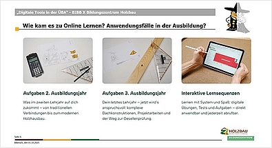 Mehrwert für alle Interessierten: Das Bildungszentrum Biberach gab den Teilnehmenden in seiner Präsentation nicht nur Einblick in die eigene Arbeit, sondern auch Hinweise, wie die Umsetzung der digitalen Tools über die Holzbaubranche hinaus in anderen Einrichtungen funktionieren kann.