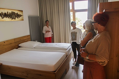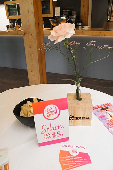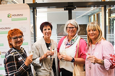 Ein besonderes Highlight war die Hausführung von Hotelchefin Bettina Preiß: sie zeigte den Gästen die modernen Seminarräume sowie die komfortablen Hotelzimmer. Viele Teilnehmerinnen waren begeistert, wie vielfältig die Möglichkeiten im Bildungszentrum Holzbau sind – von professionell ausgestatteten Räumen für Tagungen, Seminare und Workshops bis hin zu einem gastfreundlichen Hotel mit Wohlfühlatmosphäre.