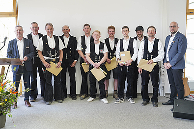 Die Feier würdigt die investierte Zeit der Kursteilnehmenden, sich als best ausgebildete Fachkräfte im Holzbau zu agieren. Im Anschluss blieb genügend Zeit, um sich bei einem Imbiss mit den Kolleginnen und Kollegen auszutauschen und den errungenen Erfolg gebührend zu feiern.