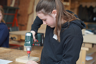 - Wir arbeiten gemeinsam in der Werkstatt an einem Holzprojekt, welches Du mit nach Hause nehmen kannst