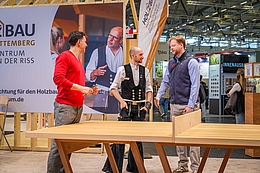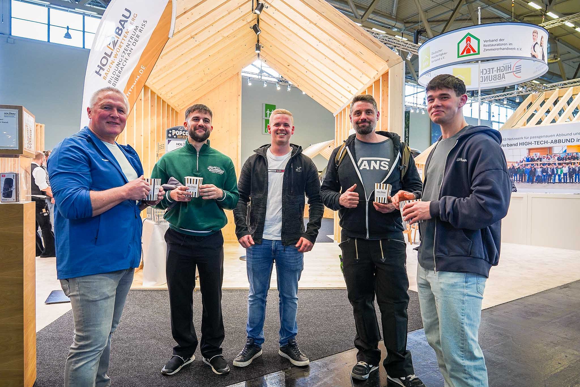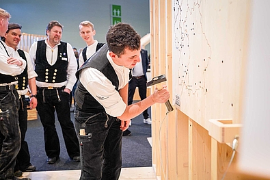 Besonders erfreulich war zudem der Besuch der Zimmerer-Nationalmannschaft, die auf unserem Stand vorbeischaute und auch vor Ort trainierte. So konnten Messebesucherinnen und -besucher hautnah miterleben, was für Leistungen die Mannschaft erbringt.