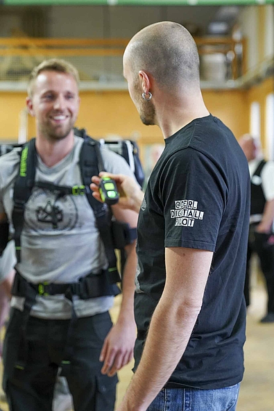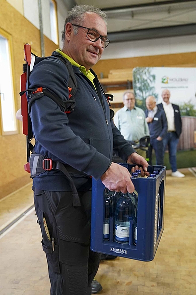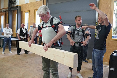 Da das Bildungszentrum Holzbau den Gebrauch von Exoskeletten in der Aus- und Weiterbildung testet,