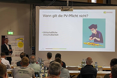 Beendet wurde die Tour de Ländle durch Technikreferent Thomas Schmidt, mit einem Überblick zur neuen PV- Verordnung und durch Wolfgang Schäfer, zuständig für das Referat Technik und Umwelt, welcher auf aktualisierte Klassifizierungen und Merkblätter unter anderem zu den Themen der Bauphysik hinwies.