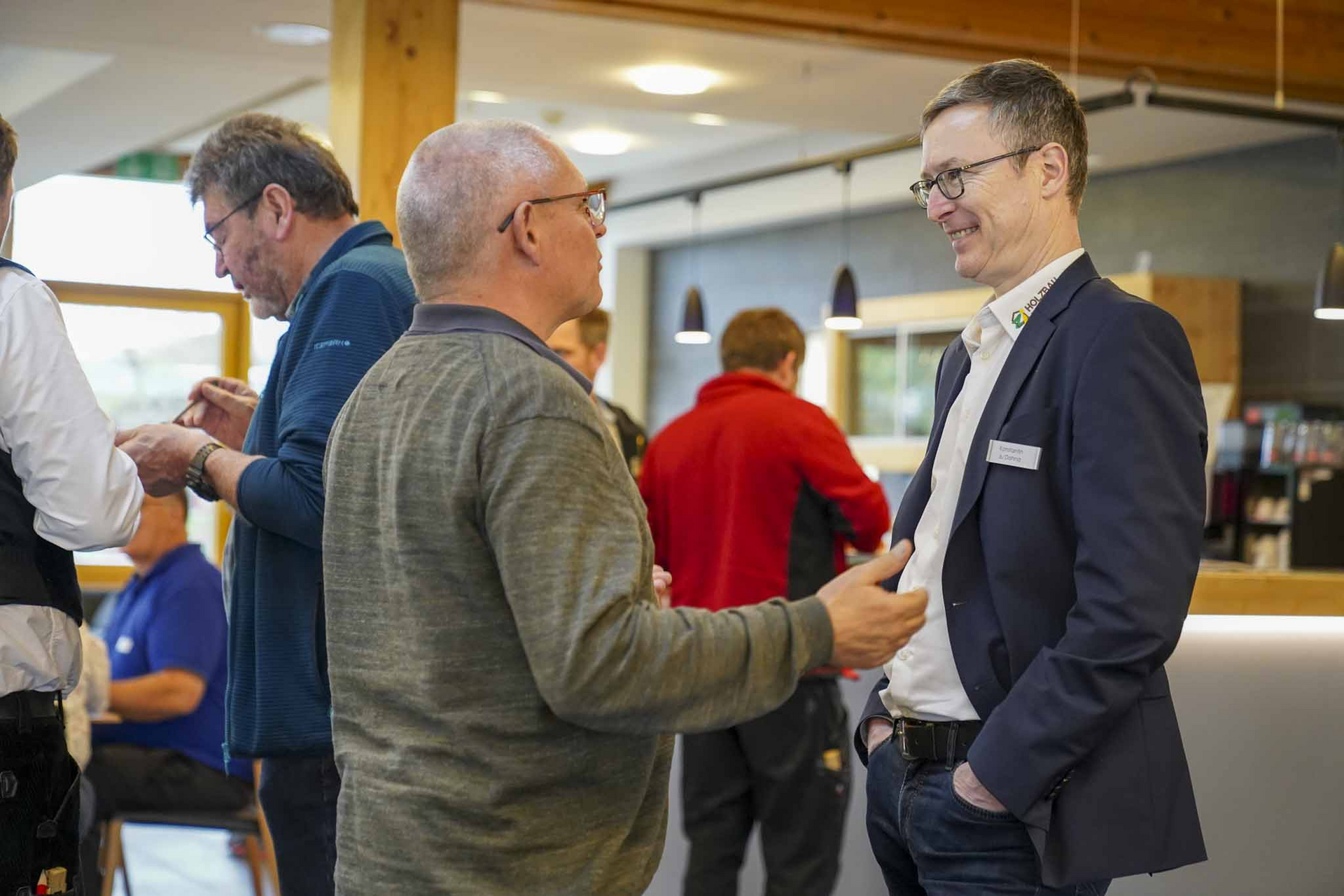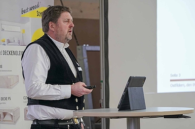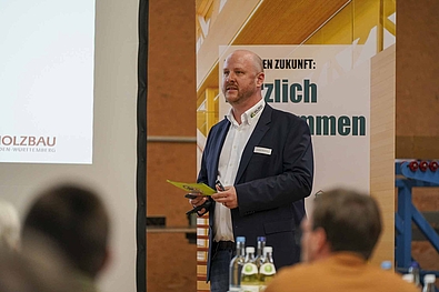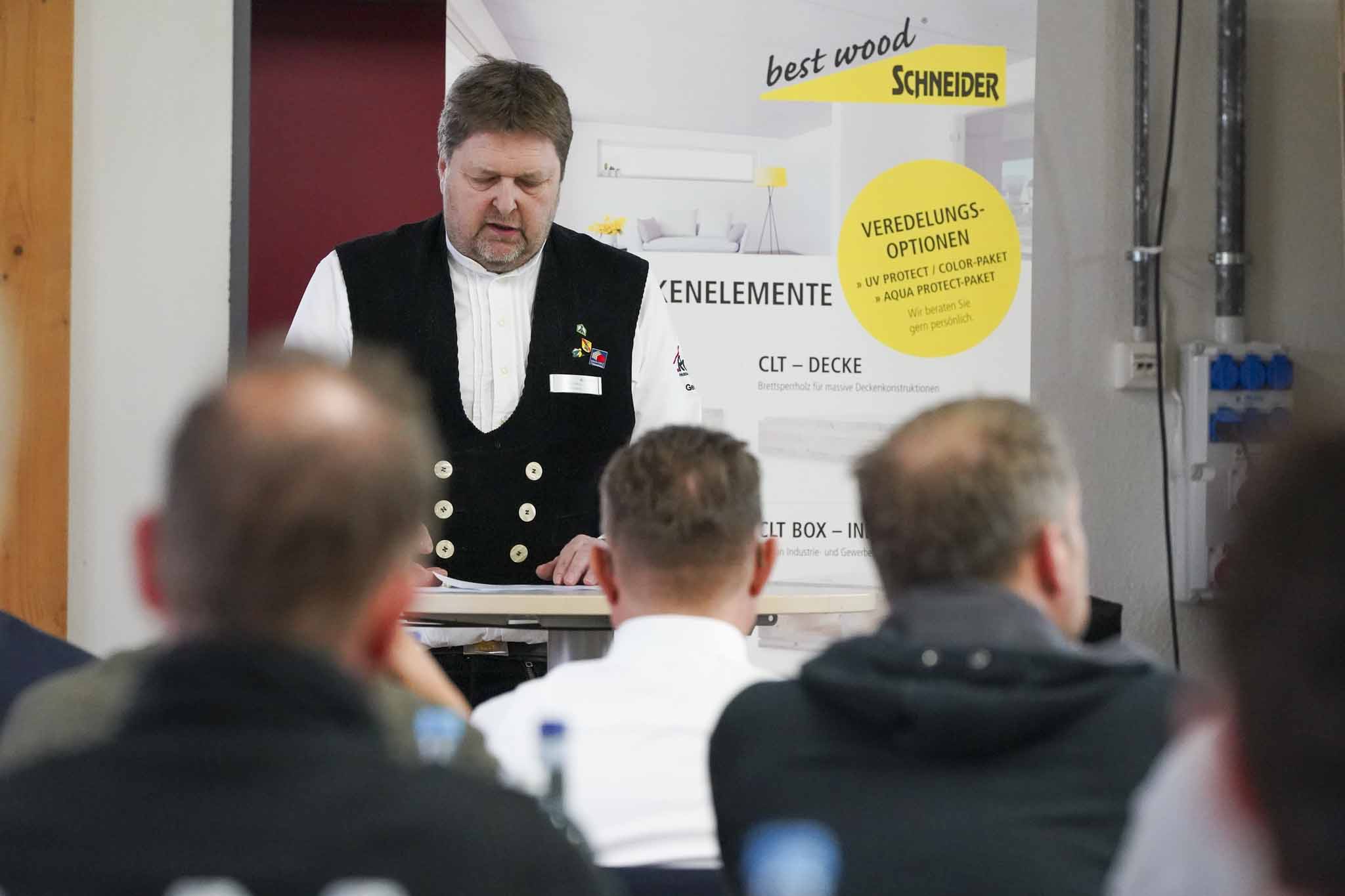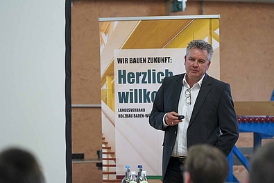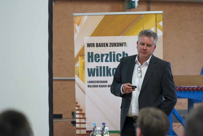 Eröffnet wurde die Veranstaltung von Ansprechpartner Torsten Rothfuss. Herr Rothfuss ist „Innungsbuddy“ beim Verband Holzbau Baden-Württemberg und ist für den regelmäßigen Austausch mit den Innungen und Betrieben verantwortlich.