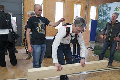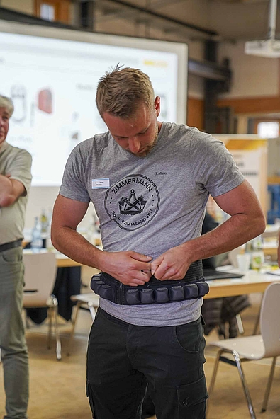 Das Arbeitsschutz mehr als nur der Einsatz von Gerüst und Arbeitsschuhen ist, zeigte Projektmitarbeiter Jonas Rosenow, Bildungszentrum Holzbau: