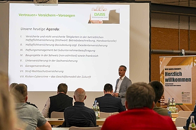 Abgeschlossen wurde Block eins der Veranstaltung von Alexander Kunkel, Geschäftsführer von DAISS Versicherungsmakler GmbH, welcher über Änderungen und aktuelle Versicherungsmöglichkeiten anhand eines Praxisbeispiels referierte.