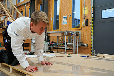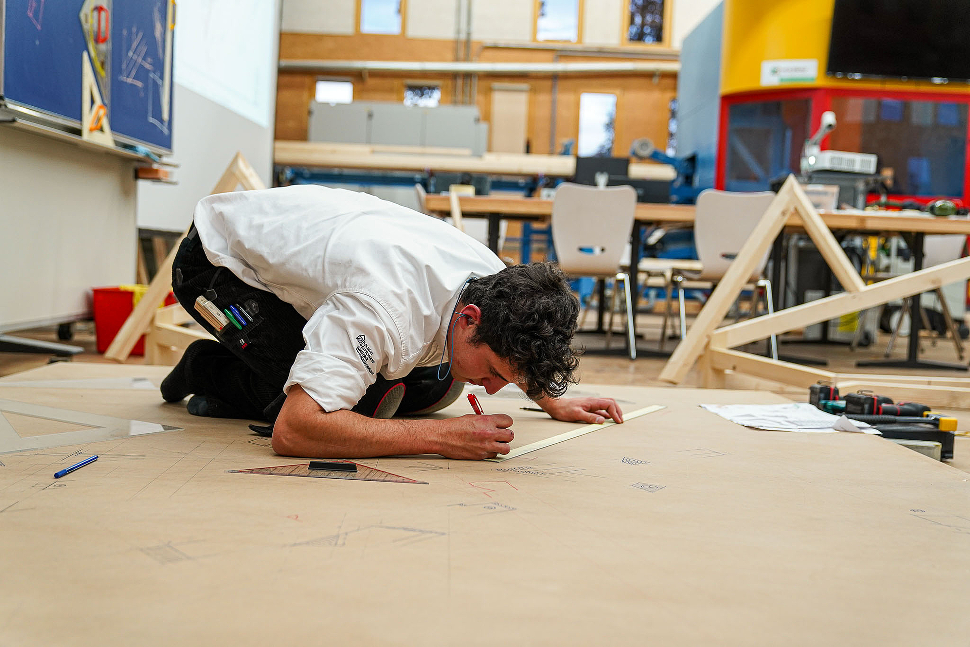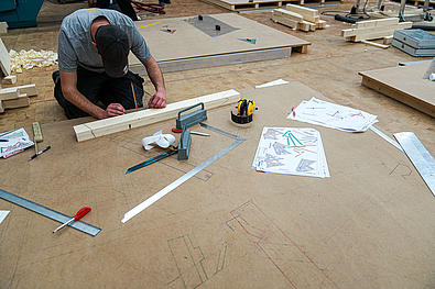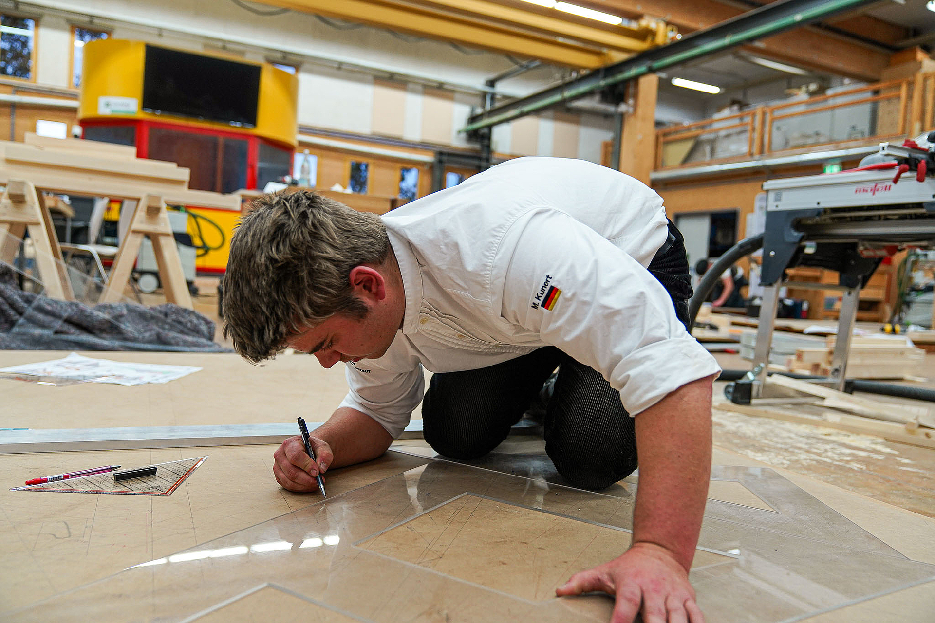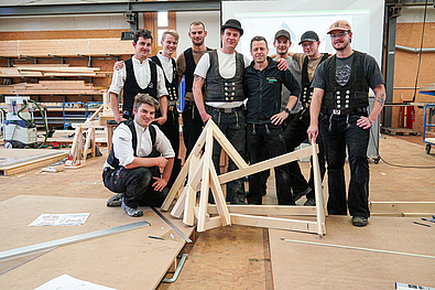 Die nötige Leistungssteigerung die von den Teilnehmern in dem Zeitraum erbracht wird ist enorm. Zusätzliche unterstützt wurden die Teilnehmer dabei von drei Mitgliedern der Zimmerer-Nationalmannschaft: Moritz Klemm, Florian Dorer und Maximilian Kunert. Gemeinsam mit den Landessiegern arbeiteten sie an einer komplexen Aufgabe, die die unterschiedlichsten Bauteile an einem Modell vereint. Schließlich mussten die wichtigsten geometrischen Problemstellung in kürzester Zeit durchgespielt werden.