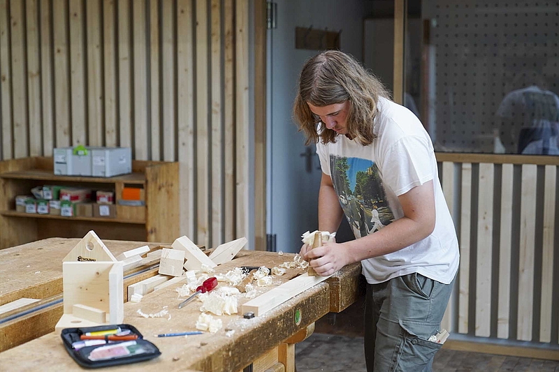 Eine Woche lang kannst du in unserer Werkstatt mit Holz arbeiten, coole Projekte umsetzen und echtes Handwerk erleben. Neben praktischen Erfahrungen erwarten dich ein abwechslungsreiches Freizeitprogramm, gemeinsames Übernachten im Gästehaus und leckere Verpflegung.