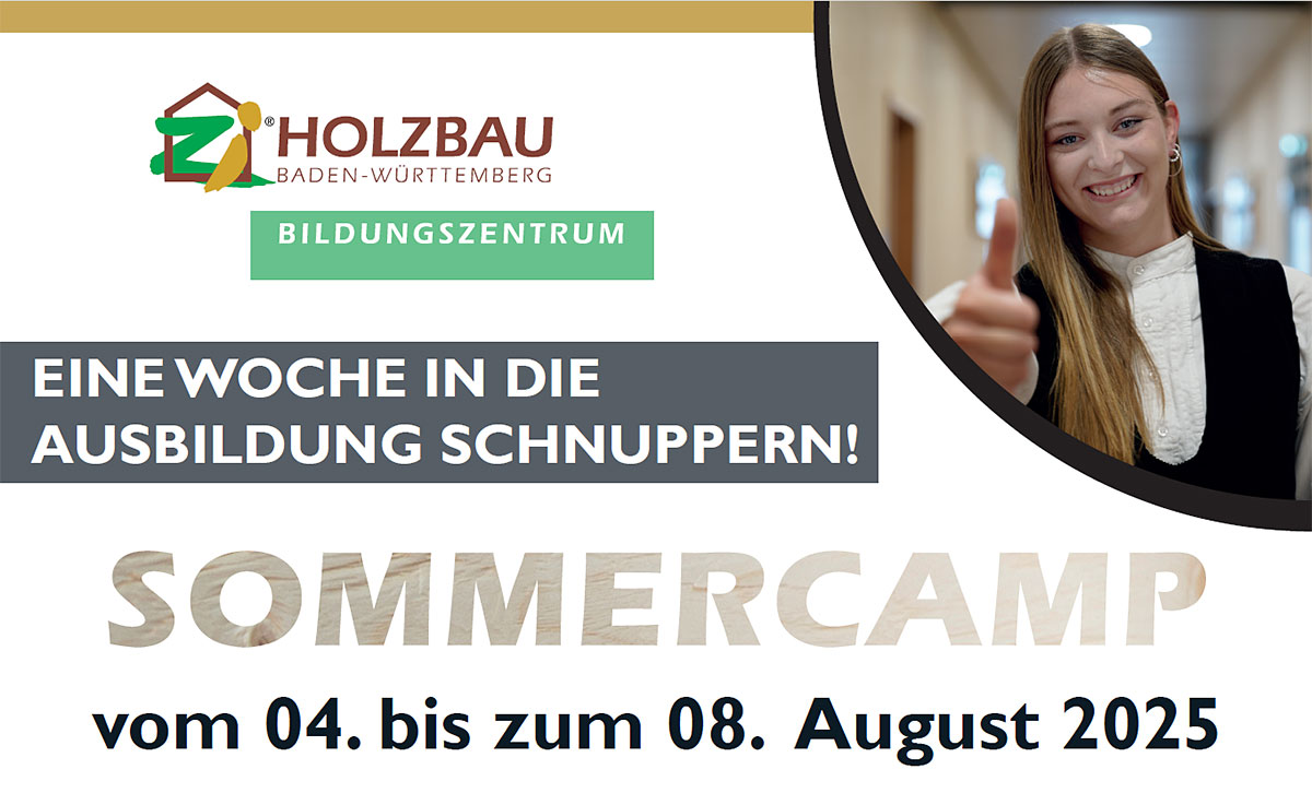 Vom 4. bis 8. August 2025 ist es wieder soweit: Unser beliebtes Sommercamp öffnet die Türen für alle, die in den Zimmerer-Beruf hineinschnuppern wollen!