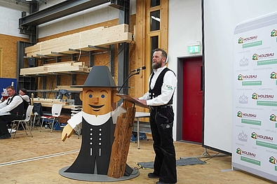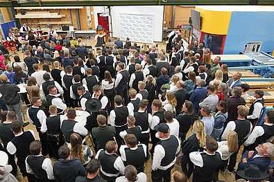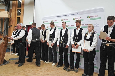 Markus Weitzmann, Leiter des Bildungszentrums, konnte zum Festabend 300 Gäste begrüßen. Er freut sich über die stabilen sogar eher steigenden Ausbildungszahlen im Zimmerergewerbe. „Ausbildung verpflichtet und wird im Bildungszentrum in vollem Umfang gelebt!“ stellt er fest und gibt den Junggesellen/innen mit auf den Weg, dass sie nun einen Gesellenbrief in einem der zukunftsfähigsten Berufe haben, den es überhaupt gibt.