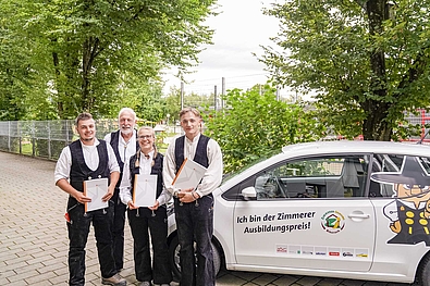Im Rahmen der Zimmerer-Lossprechungsfeier wurden in kleinen Rahmen die Ausbildungspreise für die Jahrgangsbesten vergeben. Als Prüfungsbester der Innung Biberach wurde Benedict Högerle (Betrieb: Jako Baudenkmalpflege, Rot) mit dem 1. Preis, einem Weiterbildungsgutschein im Wert von 250,- Euro belohnt. Der eigentlich erste Preis – ein Jahr lang VW Up fahren – ging an den zweitplatzierten Kevin Lichtensteiger (Holzbau Pfänder, Ochsenhausen). Benedict Högerle, dem der Preis eigentlich zustand, hat wegen eines Auslandsaufenthalts auf den PKW verzichtet. Miriam Kinkel (Jako Baudenkmalpflege, Rot) konnte als drittplatzierte einen Weiterbildungsgutschein in Höhe von 125,- Euro entgegennehmen. Obermeister Max Steigitzer überreichte die Preise und gratulierte zu diesen ausgezeichneten Prüfungsergebnissen.