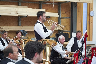 Der Abend wurde von der Zimmerer-Kapelle mitgestaltet und schloss mit dem „Zimmerer-Klatsch“. Bei Leberkäs-Burger, erfrischenden Getränken und guten Gesprächen klang der Festabend im Kompetenzzentrum Holzbau & Seminarhotel aus.