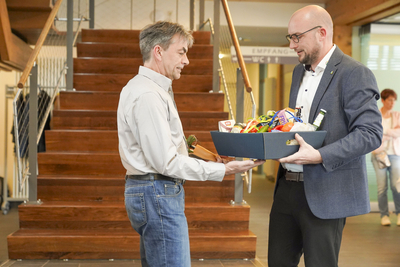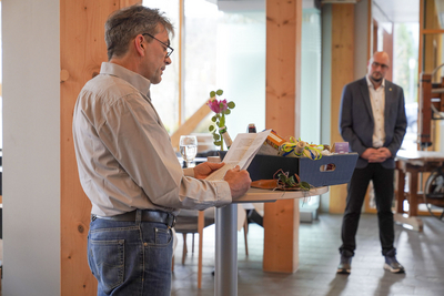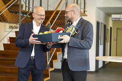 Als Zeichen der bevorstehenden und wohlverdienten „Ruhe“ erhielten Herr Otto und Herr Schneider vom Gesamtleiter Markus Weitzmann jeweils einen üppigen Vesperkorb samt Gartenschere, für was jetzt mehr Zeit sein sollte.