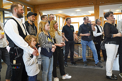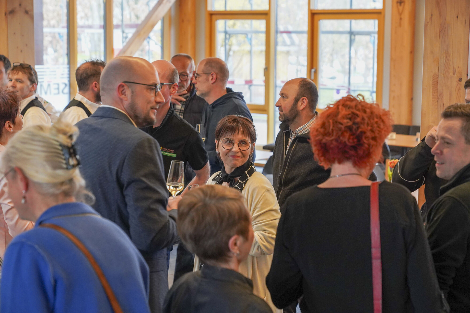 60 Kolleginnen und Kollegen feierten mit den vier Hauptpersonen diesen besonderen Tag. Mit dabei waren auch die Familien und Liebsten, der jetzt stellvertretenden Gesichter Bernhard Otto und Maximilian Schneider, sowie den neuen Gesichtern Jan Ackermann und Ernst-Martin Stephan.