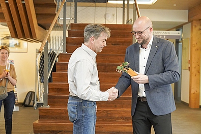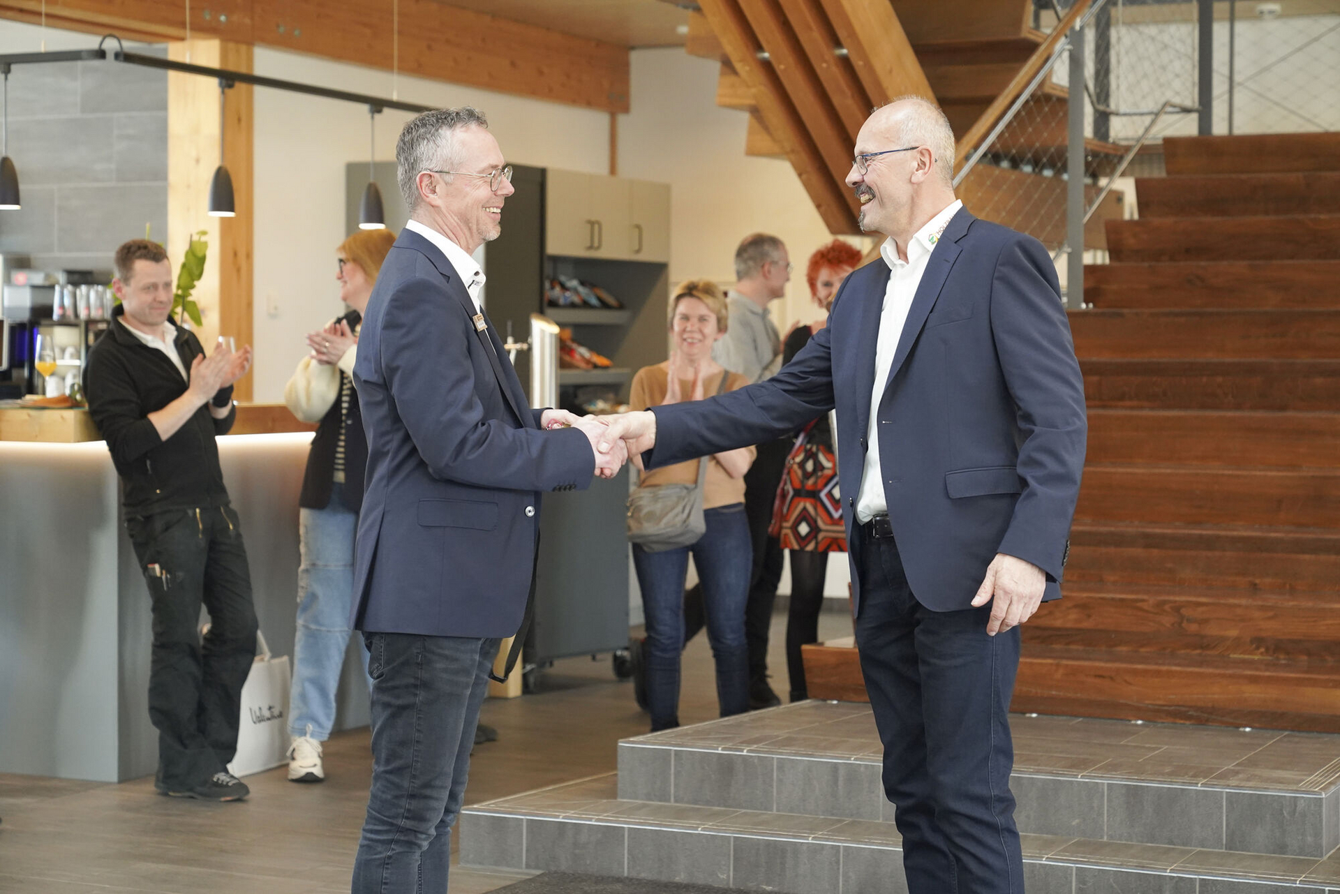 Am Freitag, den 15.03.2024 feierten wir mit unserem gesamten Team in unserem Kompetenzzentrum Holzbau & Ausbau die Übergabe zwei unserer Leitungsstellen.