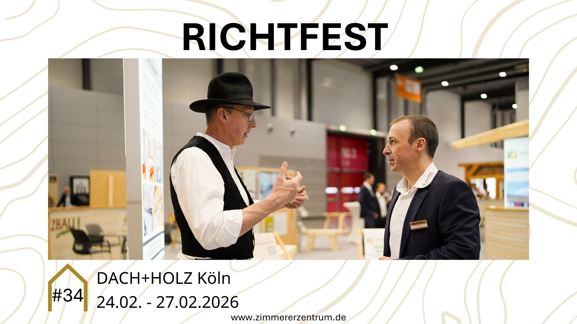 Am 24. - 27. Februar ist es soweit: die DACH und HOLZ 2026 in Köln öffnet ihre Türen. Das Bildungszentrum Holzbau ist natürlich mit dabei - Halle 7, Stand 129.