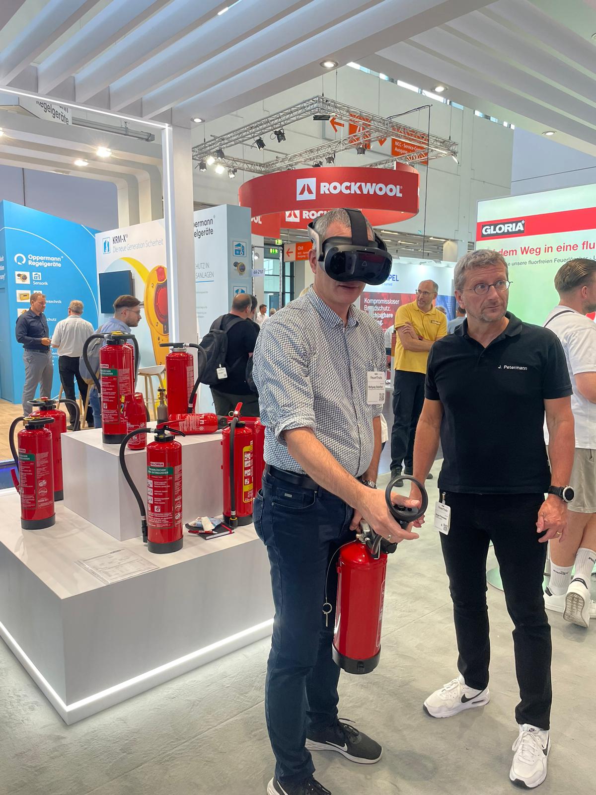 Die FeuerTrutz bietet nicht nur Lösungen für den baulichen, sondern auch für den anlagetechnischen und organisatorischen Brandschutz. Um die Handlungsfähigkeit und das Bewusstsein im Ausbildungsalltag zu schulen, hat sich das Team mehrere VR-gestützte Trainingsprogramme angeschaut, die ein wirksames und wirtschaftliches Training zur Bekämpfung von Entstehungsbränden ermöglichen.