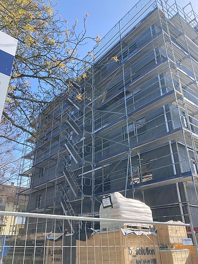 Bei einer Baustellenbesichtigung in Neu-Ulm erhielte das Projektteam um Jochen Ströhle die Gelegenheit, drei Wohnblöcke der Gebäudeklasse 4 mit insgesamt 29 Wohneinheiten der Firma b-solution aus Hallein, zu besichtigen. Die fünfgeschossigen Gebäude wurden in Holzmassivbauweise errichtet.