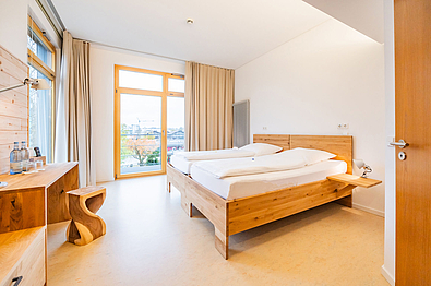 Die Zimmer im Seminarhotel bieten großen Komfort und sorgen mit sichtbaren Holzoberflächen aus Zirbenholz für einen angenehmen Schlaf.