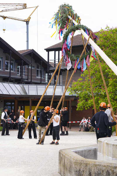 Die Vorbereitungen für den Maibaum traf Robert Schmid im Vorfeld mit den Auszubildenden und gemeinsam mit dem Wohnheim CJD, welches bei der Herstellung des handgefertigten Kranzes unterstütze.