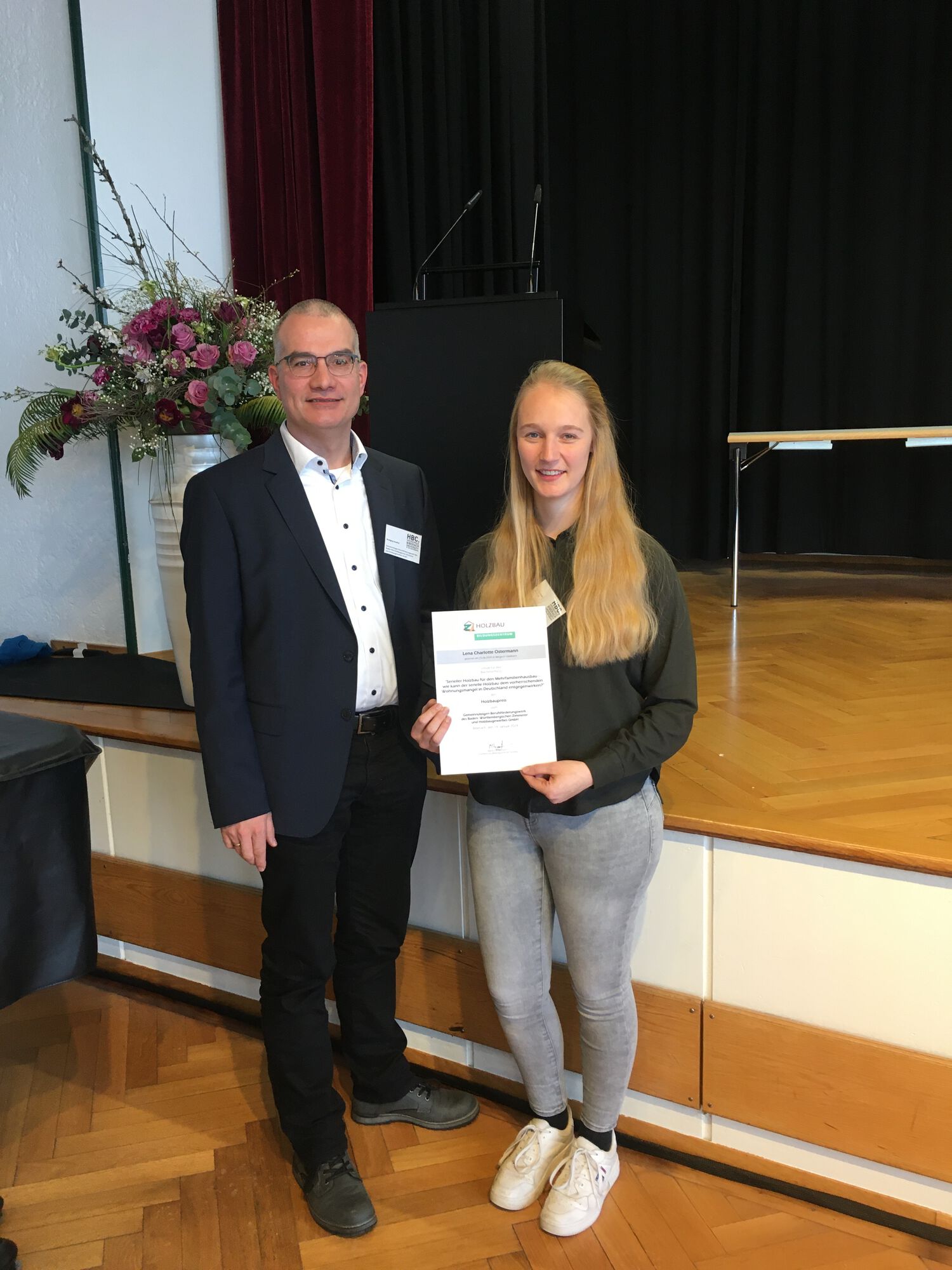 Bei der Preisverleihung wurden neben Frau Ostermann auch Joshua Weichmann und Antonia Schoch von weiteren Preisstiftern geehrt. Beide haben auch das Biberacher Modell Holzbauprojektmanagement absolviert und hervorragende Leistungen erbracht.