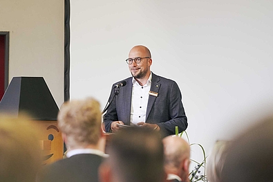 Ehrengast Gerd Renz begrüßt die Gäste