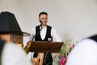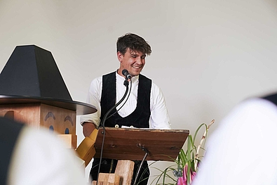 Ernst Stephan, Fachbereichsleiter der Fort- und Weiterbildung, begrüßte die 70 Absolvent/innen mit ihren Familien und Freunden. Markus Weitzmann, Gesamtleiter des Bildungszentrums Holzbau, hieß die Gäste ebenfalls willkommen: „Die Entscheidung, eine Fort- und Weiterbildung im Holzbau, insbesondere zum Zimmermeister, zu machen, wird nicht von heute auf morgen getroffen. Mein größter Respekt gilt euch und euren Familien, die euch in dieser Zeit den Rücken freigehalten haben. Bei der Zeit und dem Geld, das ihr in euch selbst investiert, beginnt die Reise bereits mit eurer Entscheidung.“, so Weitzmann.