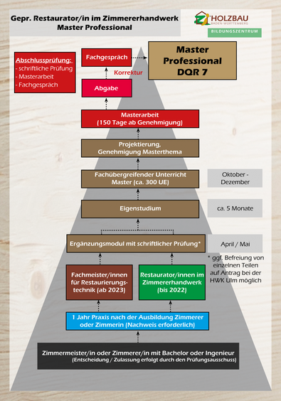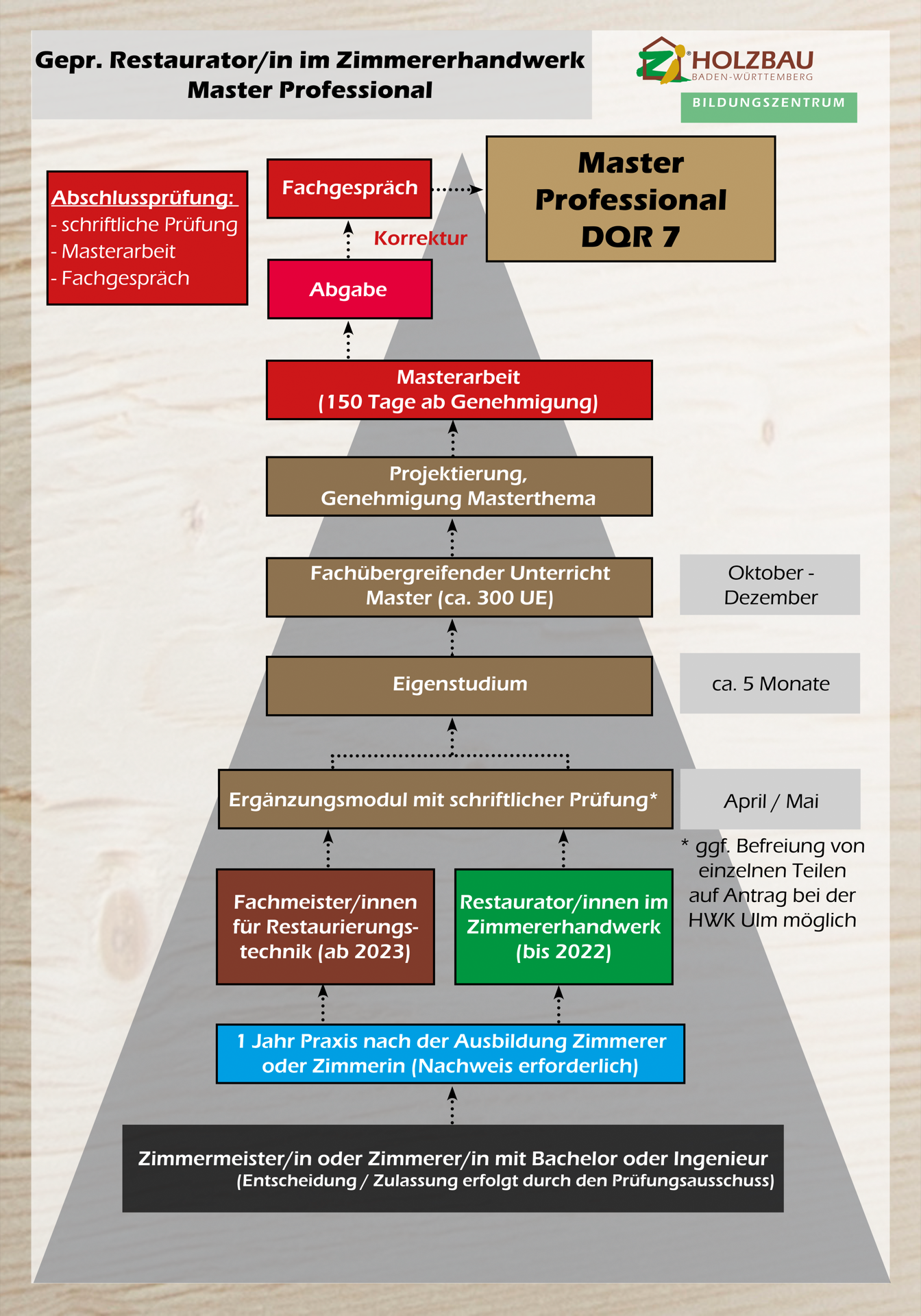 - Zimmerergesell/innen mit Studienabschluss (Dipl. Ing. / Bachelor) und min. 1. Jahr Berufspraxis als Zimmerer/Zimmerin, die den Mastertitel anstreben.